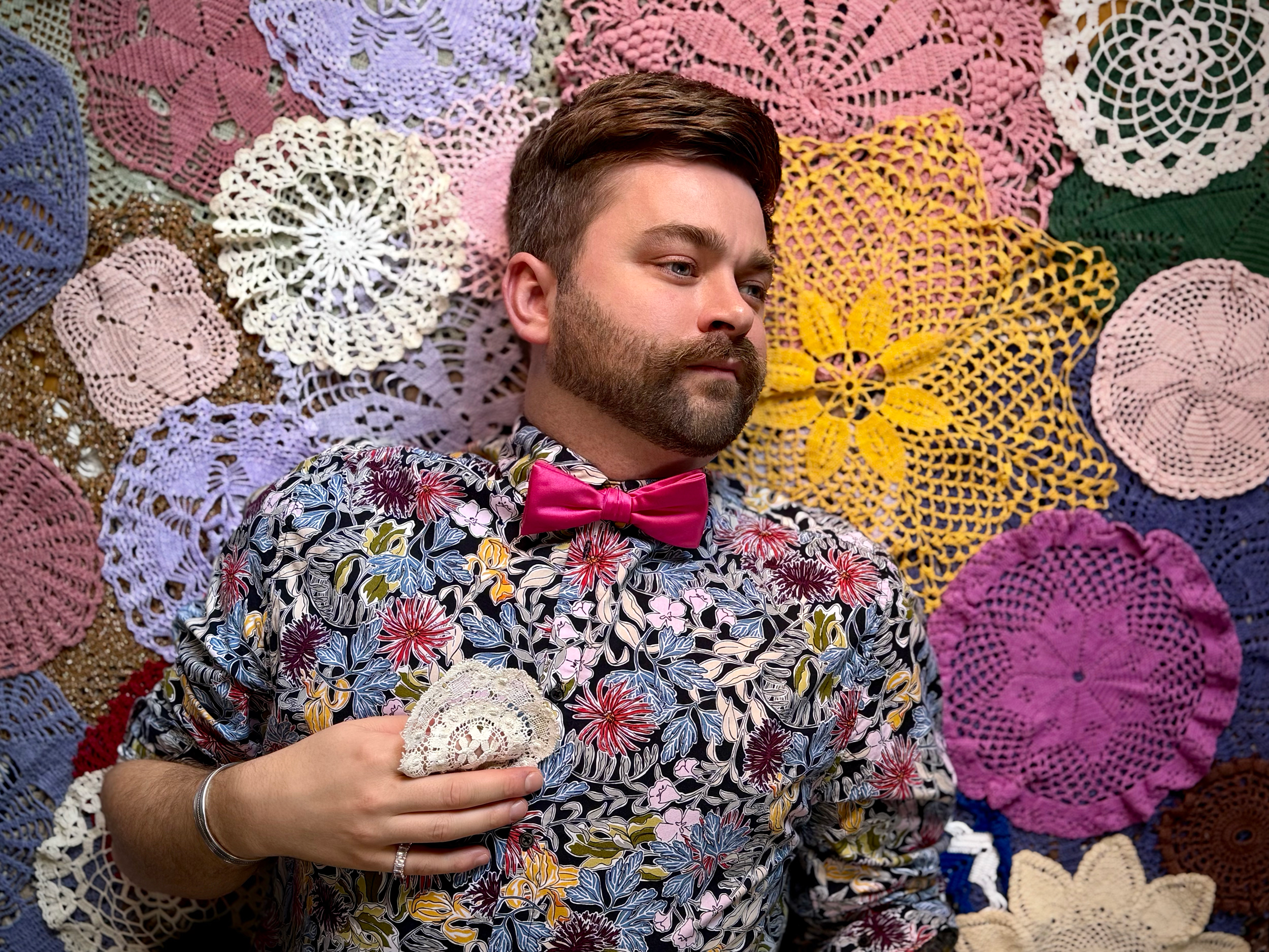 John Laurence was born in Belfast, Northern Ireland in 1983. In his work as a textile artist, he playfully borrows elements from wallpaper and fabric design to create indulgent and grandiose collages. Seeking to manipulate and deconstruct pattern in innovative and colourful ways, he brings together preexisting fabric designs and embellishes pieces indulgently with beads, buttons, sequins, diamantes, and other materials.